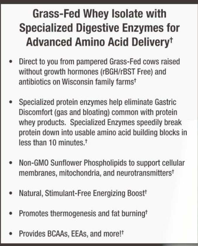 • 24 grams per serving of pure, grass-fed, easily digestible, rBGH-free, rBST-free and antibiotic-free protein to fuel performance and strength, jump-start muscle recovery, increase dietary protein, or fight late night snack attacks.