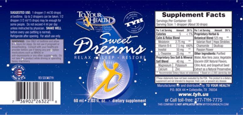 Looking for help to calm your mind and relax your body so you can fall asleep? You’ve come to the right place! To Your Health’s *Sweet Dreams* is a superior all-natural sleep aid that provides a synergistic combination of herbs, melatonin, and l-theanine to help lower stress hormones, quiet overactive minds, and promote restful and productive sleep. Restful sleep is only one delicious serving away! Give yourself the sleep you deserve so you can wake up rested and ready for the day!